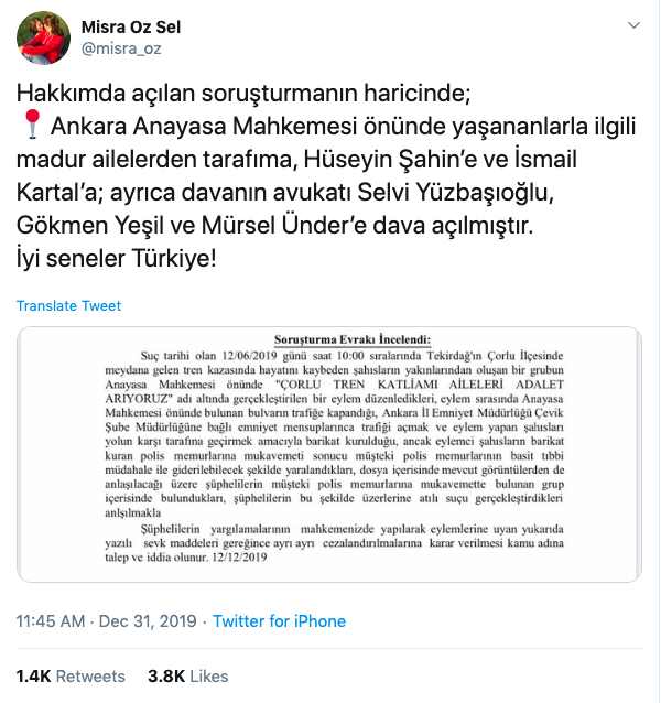 Ankara Chief Public Prosecutor's Office (CPPO) indicted lawyers @av_gokmenyesil @murselunder @selviyzbasioglu who are representing victims of Corlu train accident where 25 people died and 328 wounded. @CCBEinfo @ProtectLawyers @IBAHRI @L4L_INT @UNIndepJudgespic.twitter.com/jJHt0VkZBo
