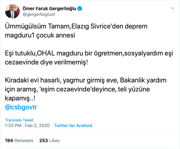 As we said in our report, deprivations which Turkey's purge victims suffer are endless: A purge victim whose house was collapsed in the recent earthquake is denied social relief. @rampi @LyudaKozlovska