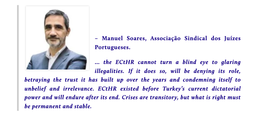 Manuel Soares, Union Association of the Portuguese Judges says @ECHR_CEDH cannot turn a blind eye to glaring illegalities (in Turkey).pic.twitter.com/qH2suNnt07