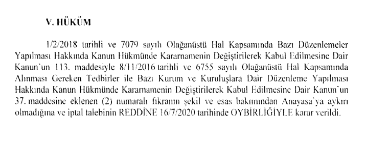 #JUSTIN: Turkish Constitutional Court dismissed the Main Opposition Party's action for annulment filed against the impunity clauses which provide for criminal, civil and administrative immunity to the civilians who acted to suppress a coup attempt or a terrorist activity.pic.twitter.com/X5rOBc1SKA