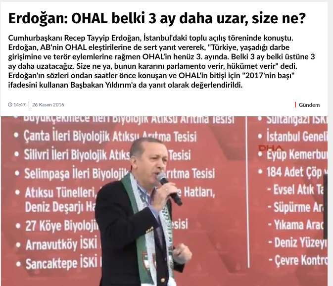 Same day! Yildirim : State of emergency won't be extended. Erdoğan: State of emergency might be extended.pic.twitter.com/HFLgTzH5Ne