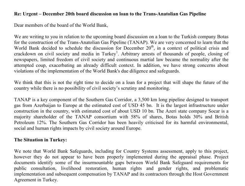 39 NGOs urge @WorldBank not to finance #TANAP Pipeline BCof #Turkey's mass #arbitrary #arrests & other HR violations http://www.counter-balance.org/ngos-call-on-world-bank-not-to-finance-the-trans-anatolian-pipeline …pic.twitter.com/Lw6AlvniPe