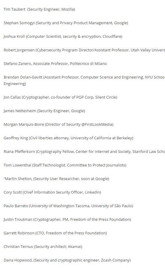 Reporters. See this: the signatories below are among world's top cryptography and infosec experts. Interview *them* http://technosociology.org/?page_id=1687 pic.twitter.com/t0eolnX8sr