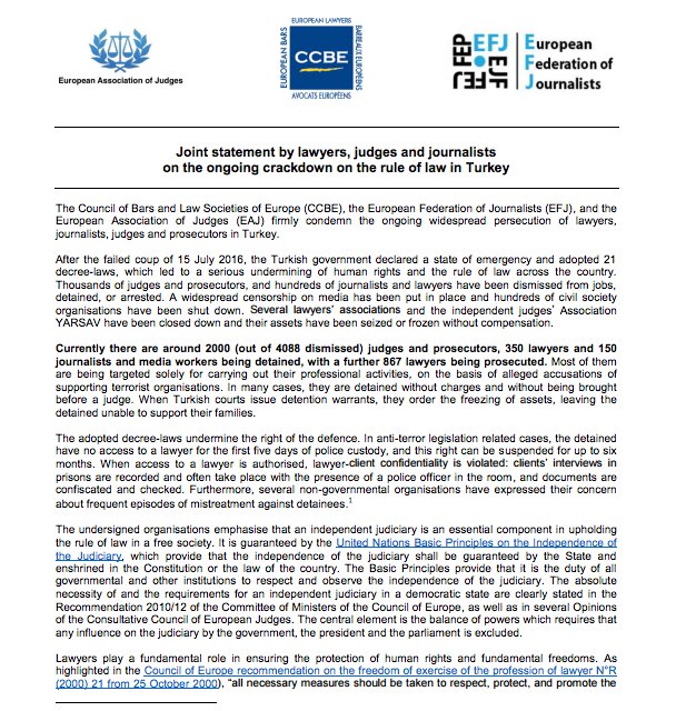 Avrupa Barolar Birliği @CCBEinfo Türkiye'de avukatlara yönelik toplu tutuklamaları kınadı; @barolar ise sessiz. #AvukatlarGünüpic.twitter.com/cSMMpcCG6t