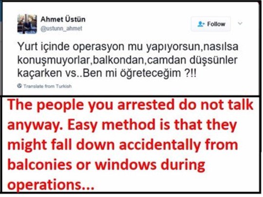 Pro-Erdogan fanatic suggests to throw the detainees who doesn't make confession down from the balcony or window Seem to be doing it alreadypic.twitter.com/OWCGpMYvzE