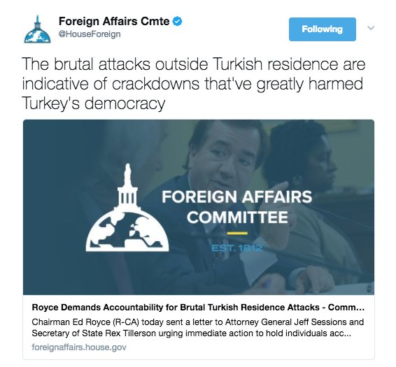 US Congress Foreign Affairs Cmmt condemns the brutal attack of Erdogan's bodyguards and asks accountability for them.pic.twitter.com/v4m0DfuGMG