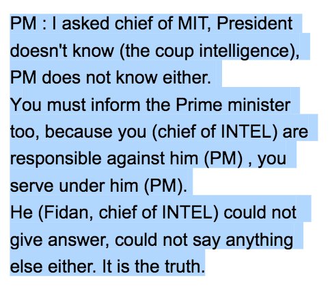 PM Yildirim: I asked intel chief Fidan; "How can U not inform me (re coup intel) despite U serve under me" & "I couldn't receive answer yet"pic.twitter.com/w1GdlOG8r5