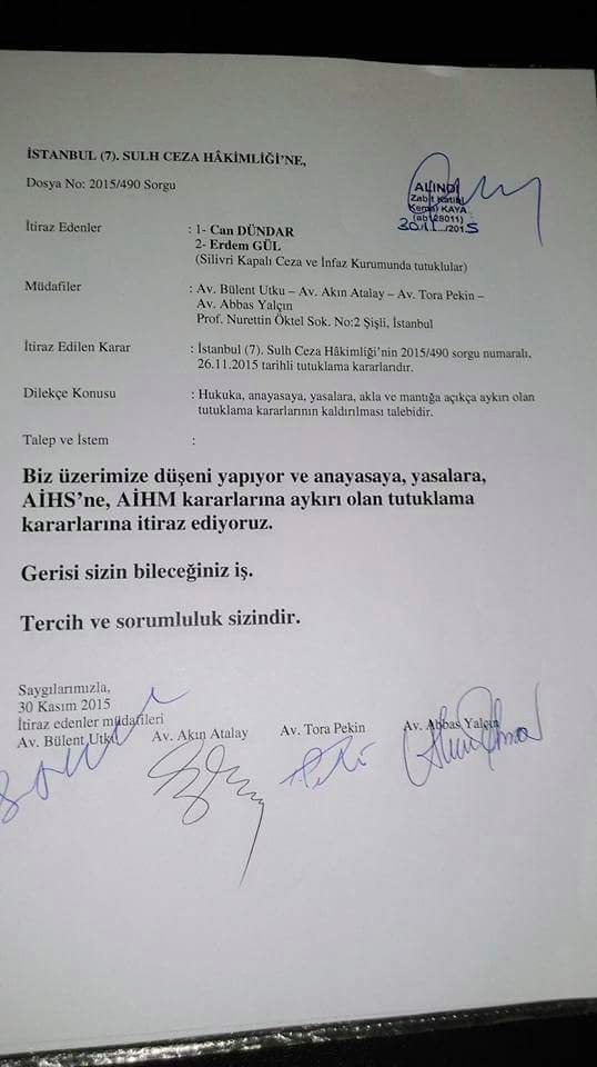 Lawyers Bulent Utku & Akin Atalay who appealed against decision to arrest of @candundaradasi & @erdemmgul subsequently were arrested.pic.twitter.com/EXSSE8cWca