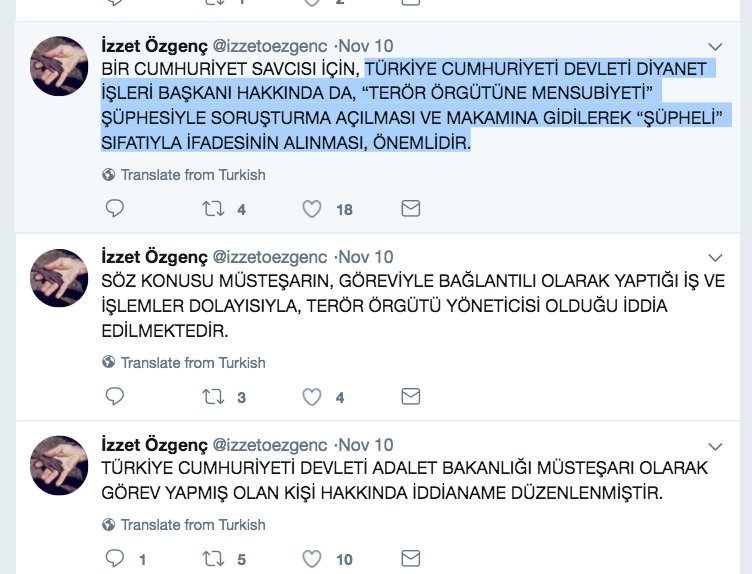 Prof. Dr. İzzet Özgenç'in açıkladığı "makamında terör örgütü üyesi suçlamasıyla ifadesi alınan Diyanet İşleri Başkanı kim?" Görmez? Erbaş?pic.twitter.com/juIbaxtgDn