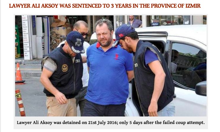 Izmir 2nd High Criminal Court sentenced lawyer Ali Aksoy to 3 years imprisonment because of his press statement issued to disclose the prosecutorial misconducts against his clients. Lawyer Aksoy has been under arrest since 2016 July.
