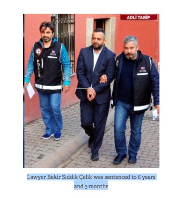 Lawyer Bekir Sıddık Çelik was sentenced to 6 years and 3 months.pic.twitter.com/FP9iSsn4xD