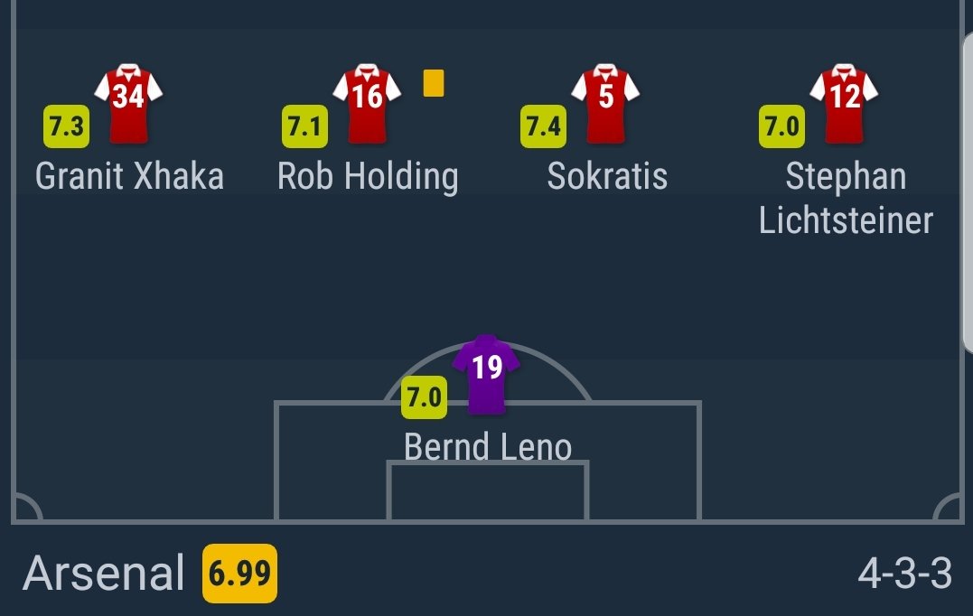 Our team once more: Leno, Bellerin, Mustafi, Holding, Xhaka, Torreira, Guendouzi, Iwobi, Ozil, Aubameyang, Lacazette
