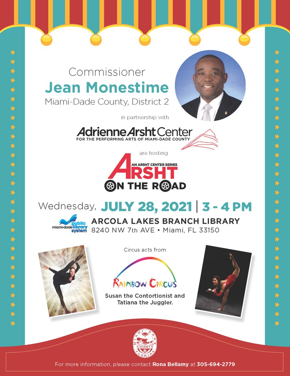 #ArshtOnTheRoad is coming to the Arcola Lakes Branch Library! Join us on Wednesday, July 28 at 3 p.m. for a pop-up performance featuring circus acts from Rainbow Circus performers Susan the Contortionist and Tatiana the Juggler. https://mdpls.org/event/5405157 pic.twitter.com/siNDr18jZW