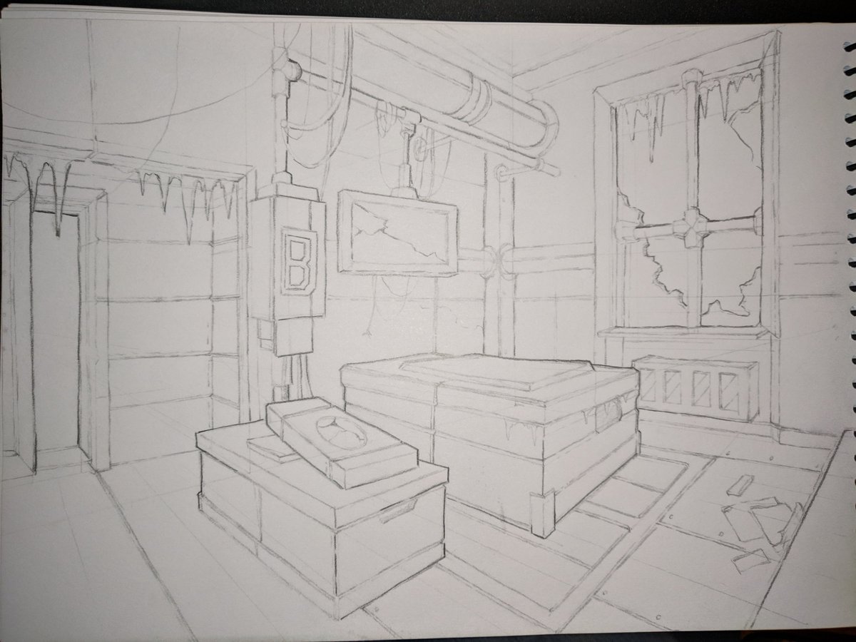 Been getting into traditional art more and more recently with all the school assignments requiring it to be made with pen and paper, most recent one had us study perspective with some imaginative drawings, so here's the result of that! :D #Traditionalart #Sketch #Study #Artpic.twitter.com/T64xuUTzx2