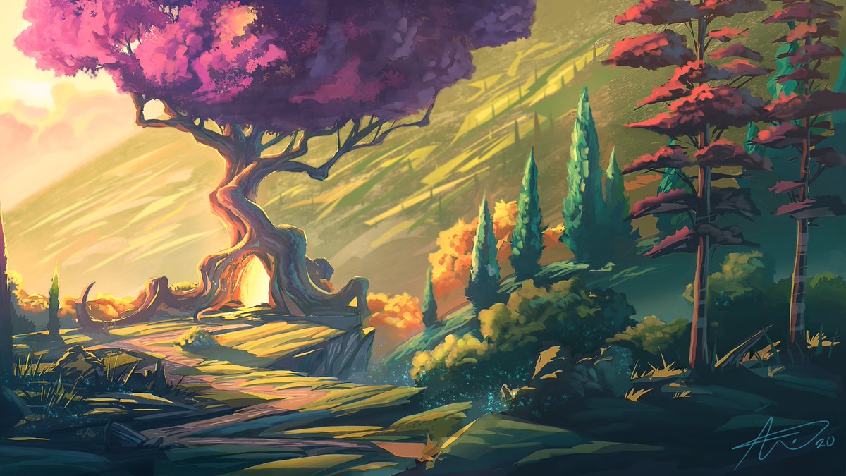Heyo! Grats on the milestone, I'm Forange! I'm a landscape painter and game art student!pic.twitter.com/m1YpuDxBU5