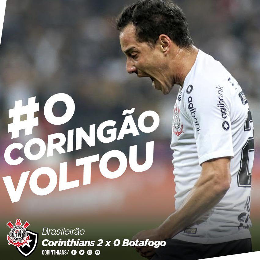 #OCoringãoVoltou! Com golaço de Rodriguinho e outro de Romero, artilheiro da@A_Corinthians,#Timão vence o Botafogo por 2 a 0 no retorno do Brasileirão.pic.twitter.com/esTKEYVOrF