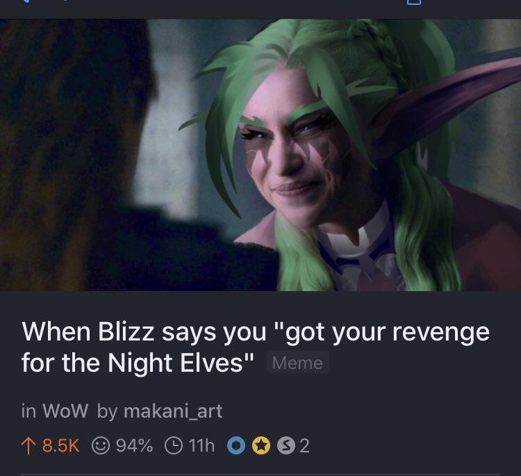 If I may, Arthur: I an irreparably angry at blizzards incredibly disrespectful writing towards an extremely dedicated community surrounding a race, one which I consider myself heavily invested in as a lore fan and hardcore RPer in game. I want to say that the Night Warrior is