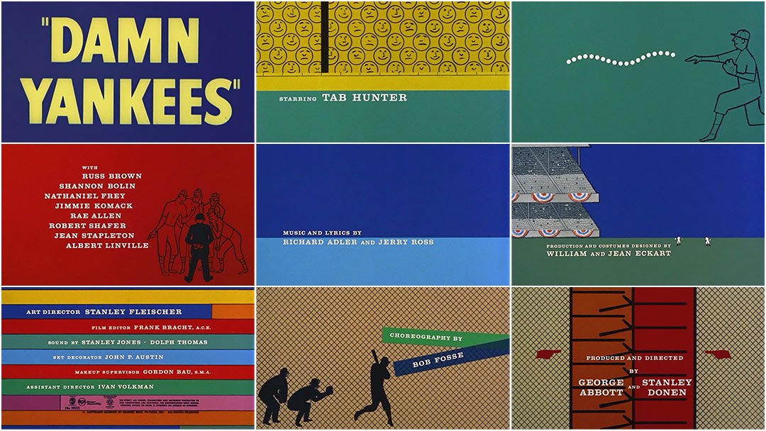 For 1958's breezy baseball musical DAMN YANKEES, Donen turned to designer Maurice Binder to create its vibrant, colourful opening http://www.artofthetitle.com/title/damn-yankees/ …
