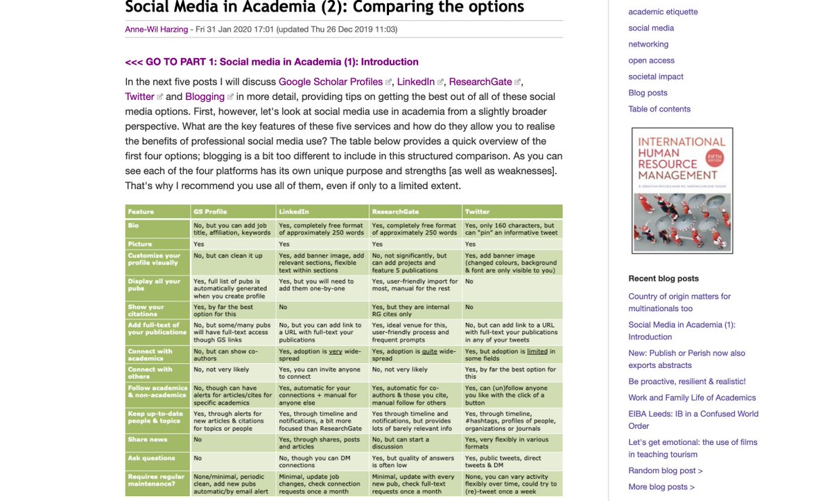 2nd post of 8-part Social Media series: https://harzing.com/blog/2020/01/social-media-in-academia-options …. Compares 4 key platforms: GS Profiles, LinkedIn, ResearchGate, Twitter
