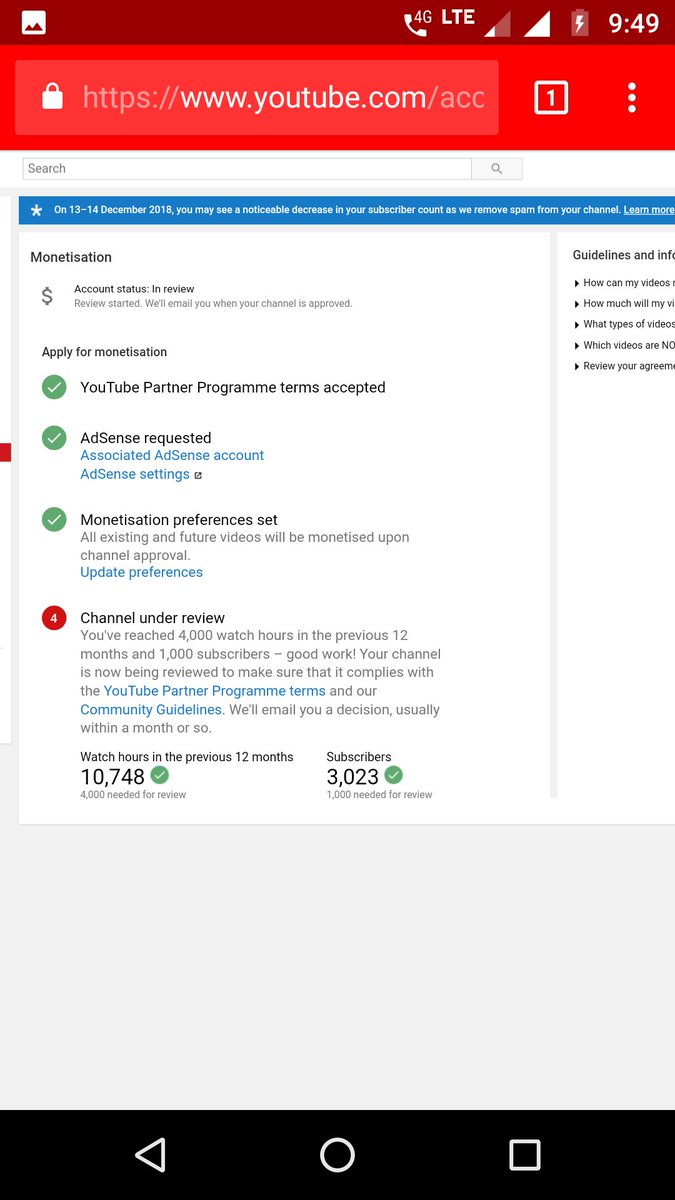 @TeamYouTube Dear Youtube Team, I have already completed 4k hour and 1k subscribe in previous 365 Days and my channel is under review till one month but monetization is not enabled piz guides. URL: https://www.youtube.com/channel/UCAUX_LrEMW0u98UqBWqJ3Uw …pic.twitter.com/0D5g9NZitJ