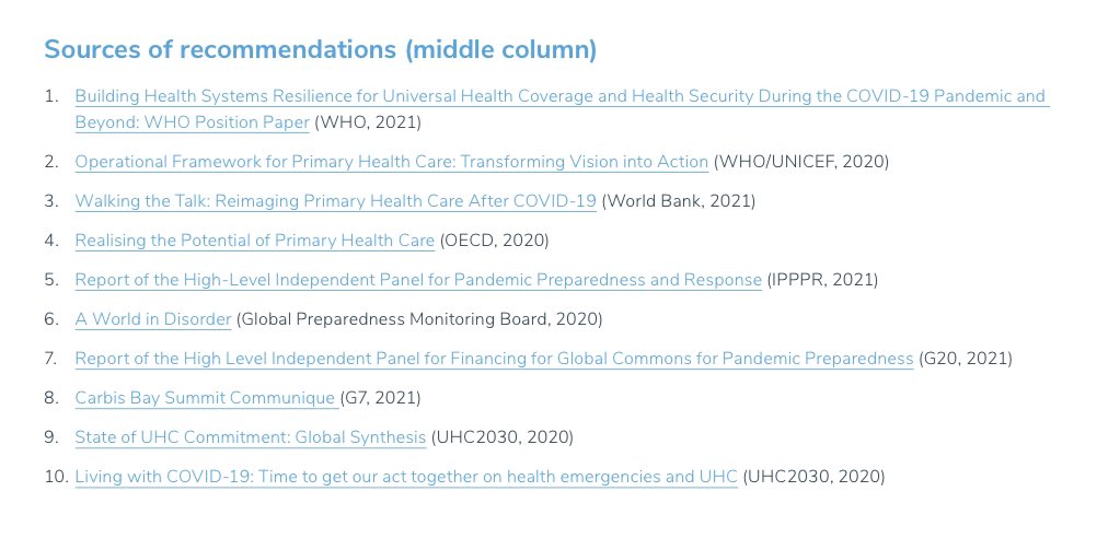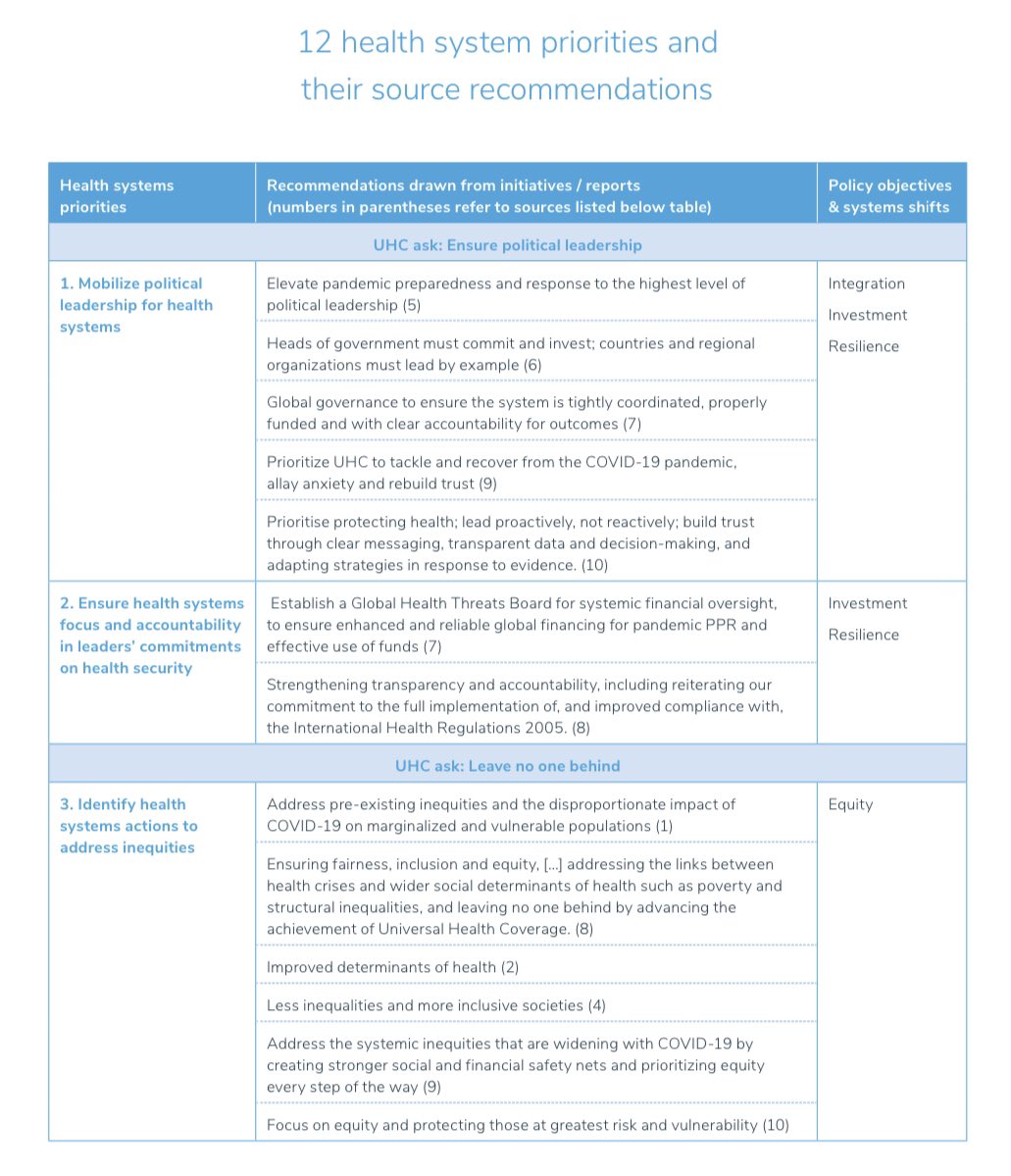 We synthesized 12 health systems priorities, comprehensively mapped by source document and type of action, such as: - Implement PHC-focused health systems reforms - Strengthen multisectoral governance & coordination - Align health systems action for UHC & health security (7/9)pic.twitter.com/Rs4gWidzVm