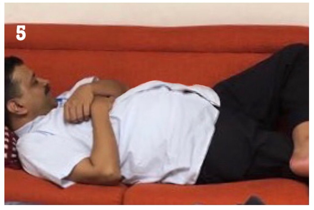 Bhai, so bhi nahi rahe he. Dhyan dein, mand mand muskara rahe hein aur photoshoot karwa rahe hein. Inko itni bhi tameez nahi he ki kisi ke daftar ke waiting room mein kaise baithna chahiye. Aise lag raha mano full daroo pikar thulle pade hein