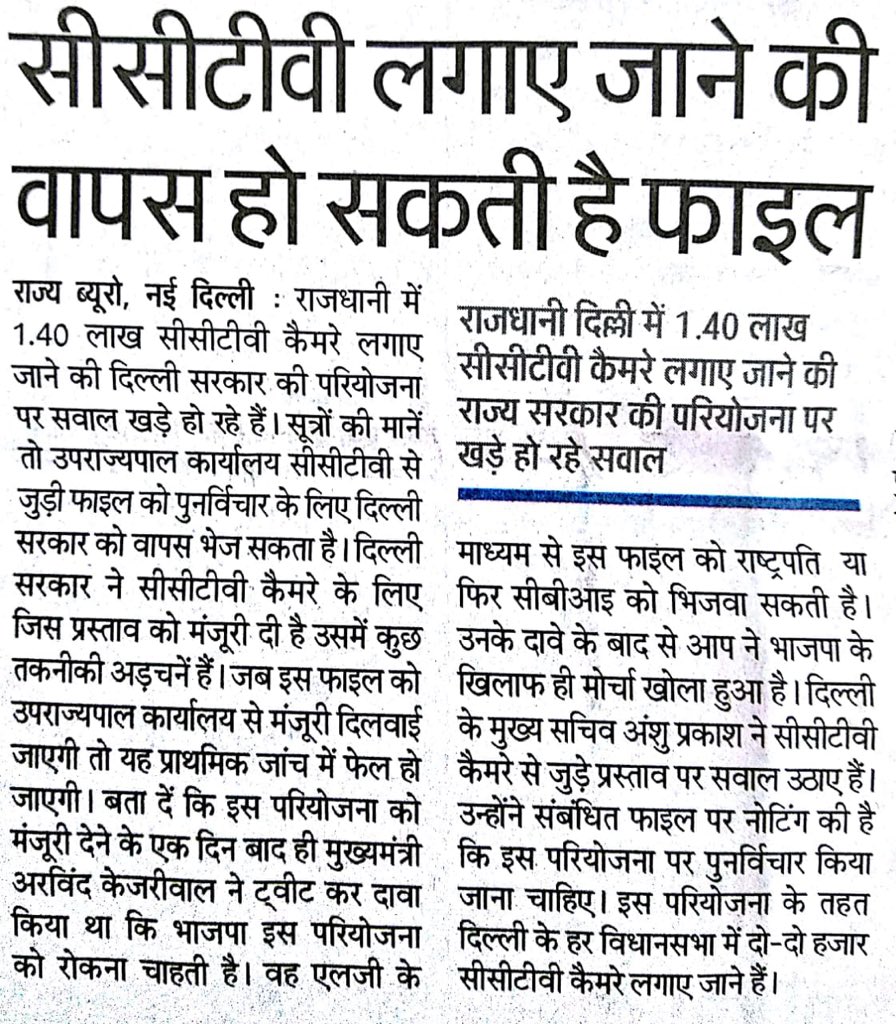 Sir, Modi himself is the mastermind behind LG's action. If Delhi is thoroughly covered under CCTVs then it would be difficult to pseudo- nationalists to distribute liquor & money during 2019 general elections. BJP got nothing to show as achievement, so will play sinister game.