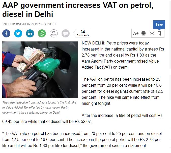 सर आपने जो वैट बढ़ाया है दिल्ली मैं २०% से २५% २०१५ मैं और फिर २०१६ मैं २५% से २७%...उसे काम करके दिल्ली वालों को रहत दो..पहले उत्तर प्रदेश मैं और दिल्ली मैं करीब ७ rs का ान्तर था जिसको आप ने २ rs से भी काम केर दिया ...आप ने दिल्ली वालों के साथ ऐसा क्यों किया?pic.twitter.com/H7lmolnnkz