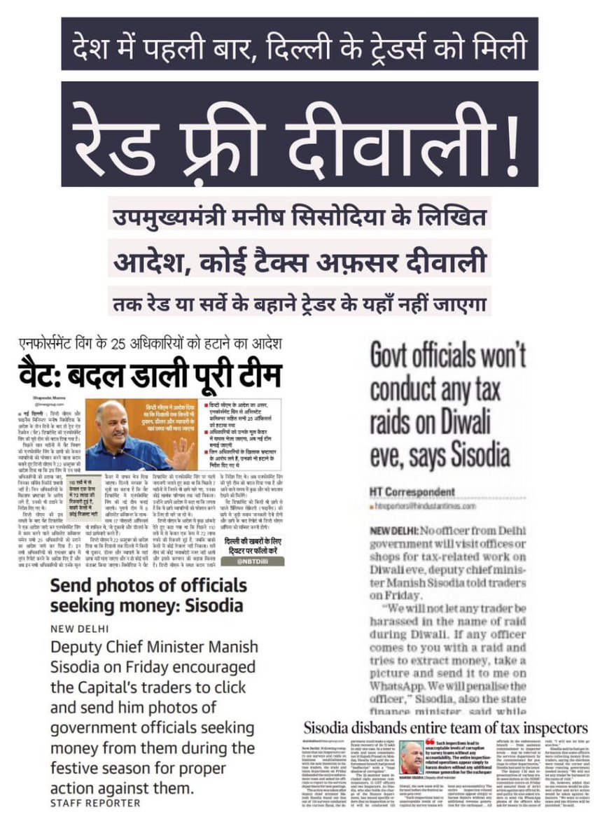 व्यापारियों पर रेड के जरिये रिश्वत मांगना पड़ेगा भारी, दिल्ली सरकार ने मदद को वाट्सएप नंबर किया जारी। पैसे मांगने वाले अधिकारी की खींचे फोटो, हम पहुंचाएंगे उसको जेल की सलाखों के पीछे। : उपमुख्यमंत्री @msisodiahttp://aapnewsexpress.com/taxraid/