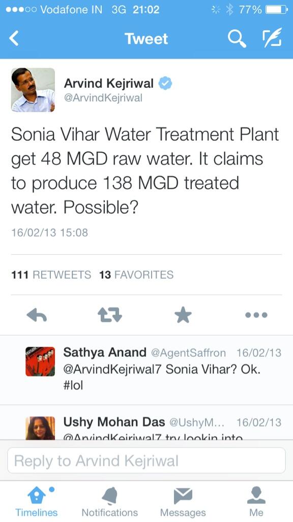 @ArvindKejriwal7 haha ha, what a reality. mera bharat hai bhai, kush bhi ho sakta hai. May be treating same water thrice. ha ha ha