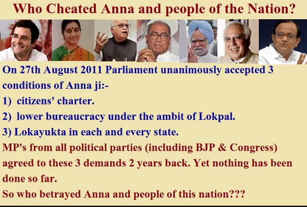 @rupeshsingh10@ArvindKejriwal@ashutoshibn7 Who cheated Anna ji ? Only AAP fighting to get Anna's JanlokPalpic.twitter.com/v6JC90owUk