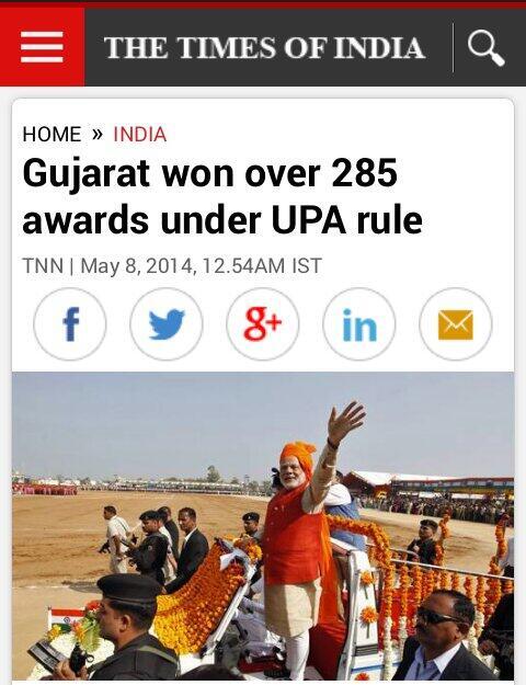 @ArvindKejriwal http://m.timesofindia.com/india/Gujarat-won-over-285-awards-under-UPA-rule/articleshow/34795383.cms?utm_source=twitter.com&utm_medium=referral&utm_campaign=timesofindia … … Gujarat won over 285 awards .285 tight slaps on the face of Cong & AAPpic.twitter.com/CgDWXXVV9h