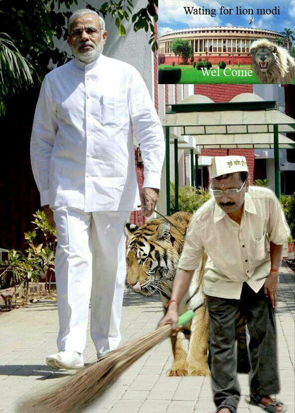 @ArvindKejriwal realizes his true position is on "feet" of Modi.Tomorrow to sweep@PMOIndia 's house pic.twitter.com/UkoNUbbxnR@VictoryForNamo