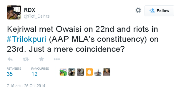 @ArvindKejriwal met Owaisi on 22-10-14. Communal Riots started on 23-10-14 (Deepawali) in Delhi. Is it coincidence? What was agenda of meet?Thanks. Twitter will use this to make your timeline better. UndoUndo