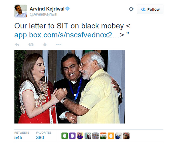@ArvindKejriwal के टीवीटने महिला अपमानकी सभी हदेपार करदी,कालेधन SIT फरियादसे इसपिचरको क्या कनेक्सन हे? @Narendramodi https://twitter.com/Narendramodi_H/status/564611145613336576/photo/1pic.twitter.com/WbGfTdH9nz