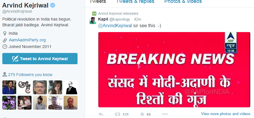 This time @ArvindKejriwal got a clinching proof of Modi being Adani Agent. @kapsologypic.twitter.com/MBTX7UzNqG