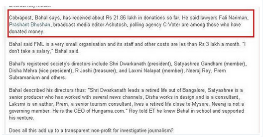 Cobrapost has investment of Prashant Bhushan & Ashutsoh