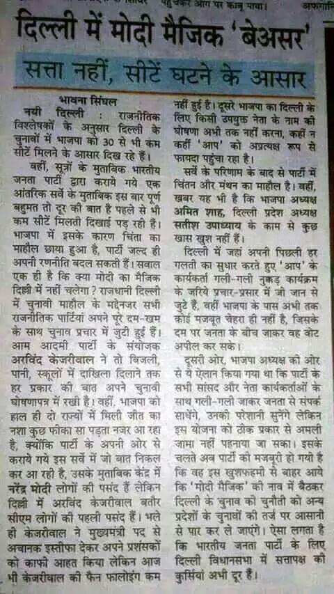 @ArvindKejriwal भाई 'सामना' की तर्ज़ पर आप भी एक अखबार लांच करिए, जिसमे मनीष सिसोदिया से बोल के आर्टिकल लिखवाइए जिसमे 'आप' 70 सीट जीत रही हो - 1 more reply