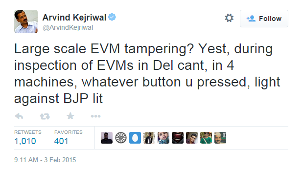 If anything, BJP has to be wary of EVM tampering by Kejriwal's Evangelical & Jihadi friends and NGO-backers from the West
