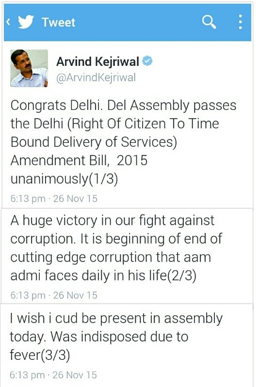 @ArvindKejriwal I hope India realizes the importance of this Bill. Delhi shows the way with progressive politicshttps://twitter.com/arvindkejriwal/status/669858907494322178 …Thanks. Twitter will use this to make your timeline better. UndoUndo