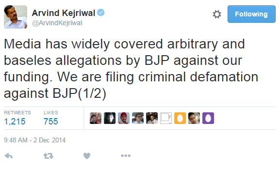 @ArvindKejriwal कोर्ट में केस करके जेटली जी हमें डराने की कोशिश ना करें।pic.twitter.com/QwWQgb6nTm