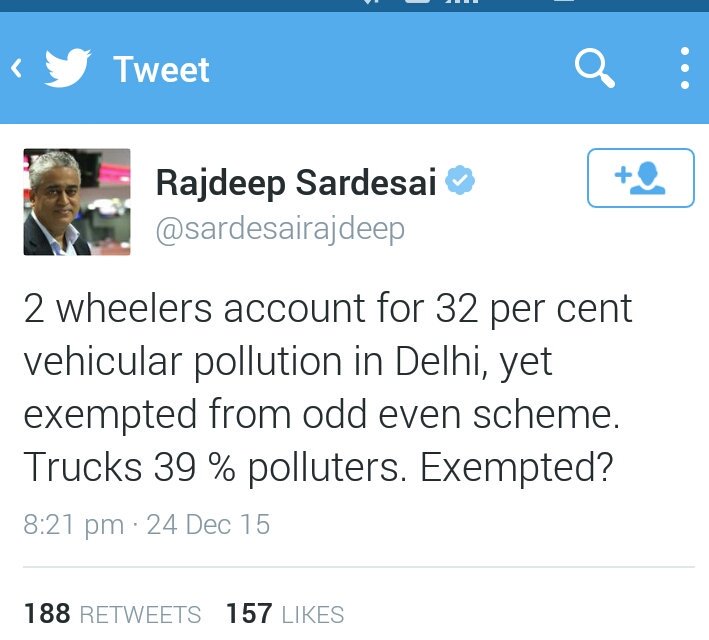 @ArvindKejriwal becoz@BDUTT is well to do lady n may b getting a company car.#DelhiOddEvenLogic#OddEvenFormula#OddEvenPolicy -