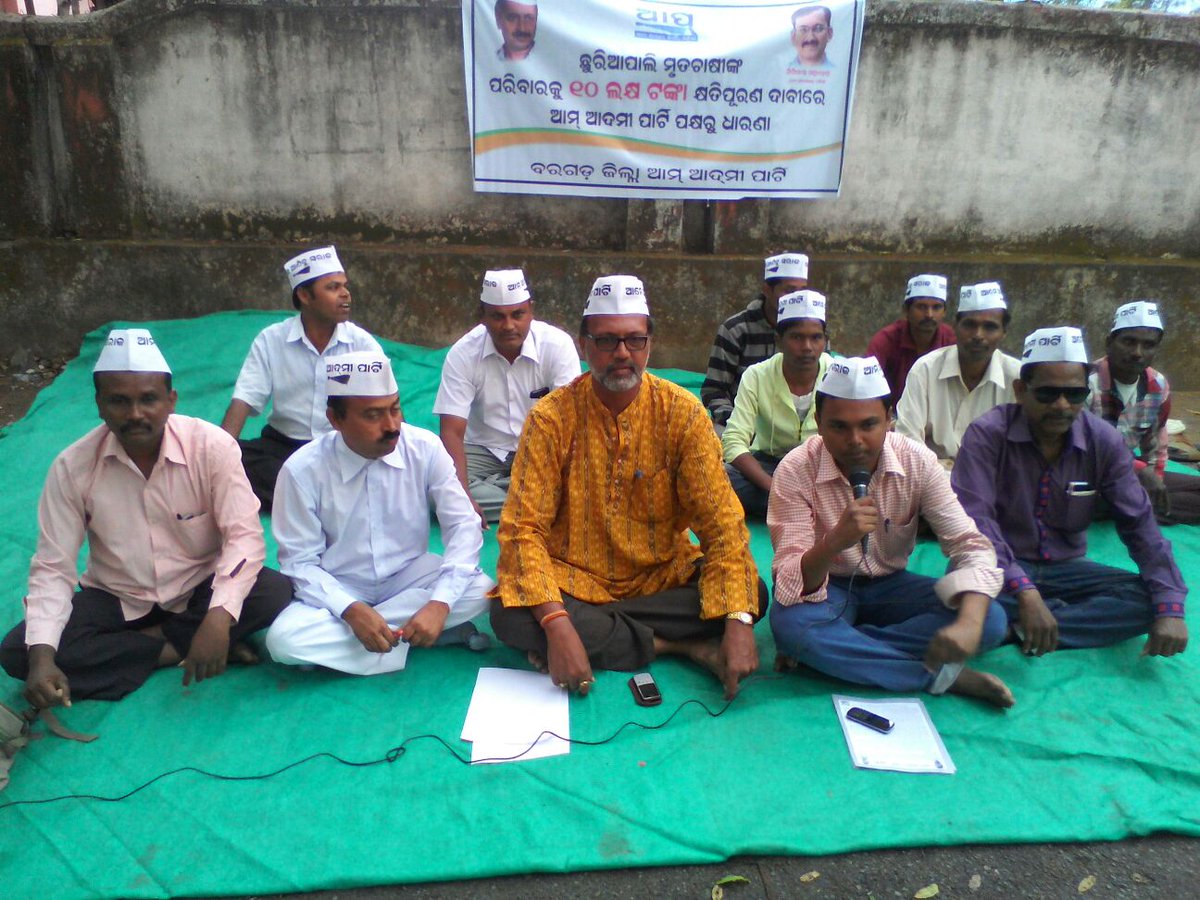 @ArvindKejriwal#AAPCares4Farmers Ajay Das's dharna in Bargarh 4 compensation 2 dead farmer's familypic.twitter.com/5ByYOAaXtF