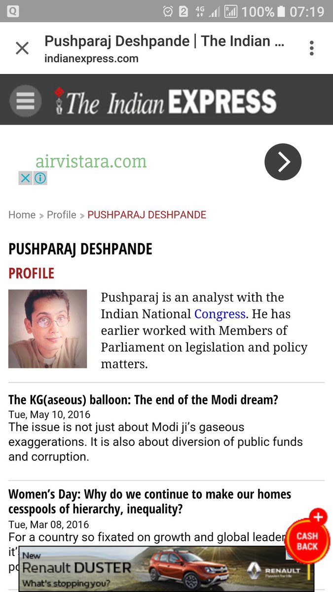 @ArvindKejriwal. Blog u circulate as news, is writtn by a Congress analyst! Brilliant coordination betwn AAP n Cong -