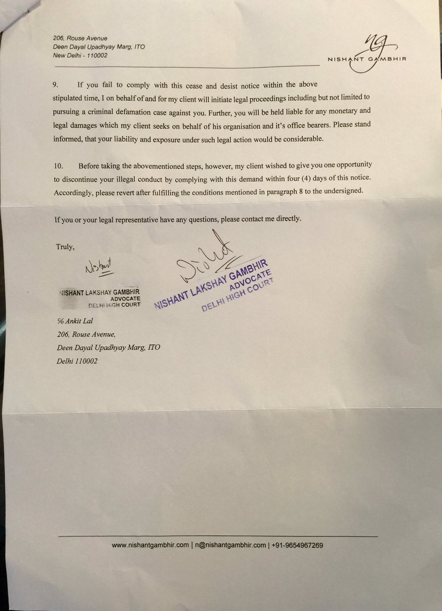 @rahulkanwal Such an irony that this ShootnScoot champ has sent me a legal notice for a tweet!pic.twitter.com/ITJdPdxJW0
