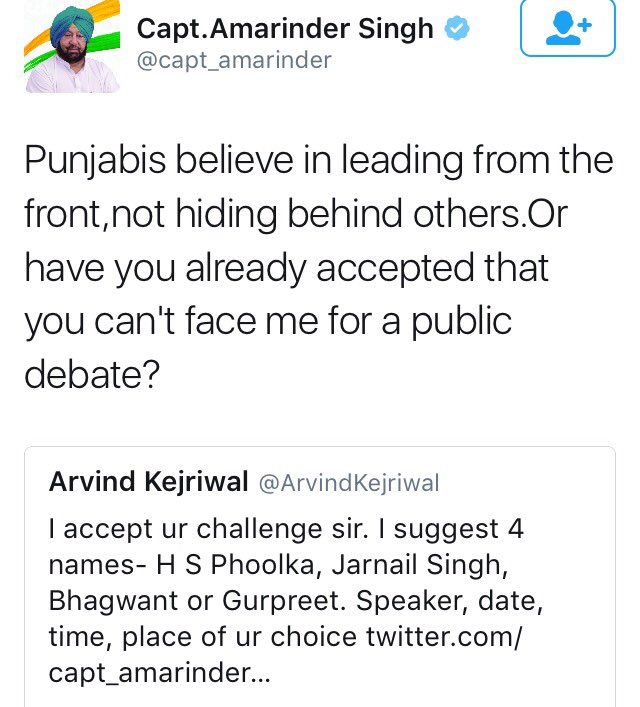 @Mohib786Mr@capt_amarinder सर अच्छा होता के आप बहस को मान जाते , खैर आपकी मर्ज़ी ।#CaptainKnocksOutKejriwal -
