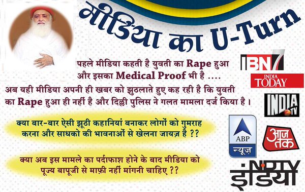 ३ साल में भी आरोप साबित नहीं हुआ पर मीडिया ने आसाराम बापू जी के खिलाफ दिखाई झूठी न्यूज़। #देश_पर_कलंक_मिडियाpic.twitter.com/JHquguP369