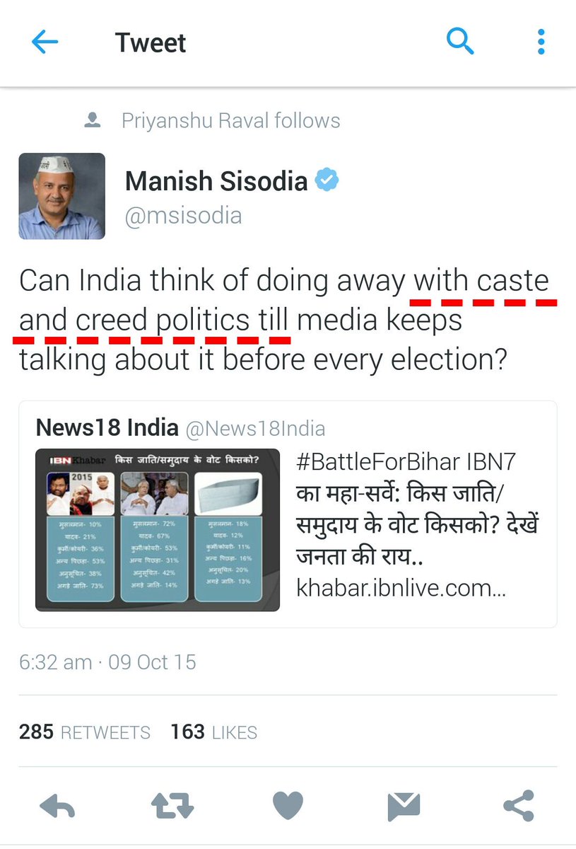 वैसे @ArvindKejriwal कहता था कि वो जातपात की राजनीती करने नही आया