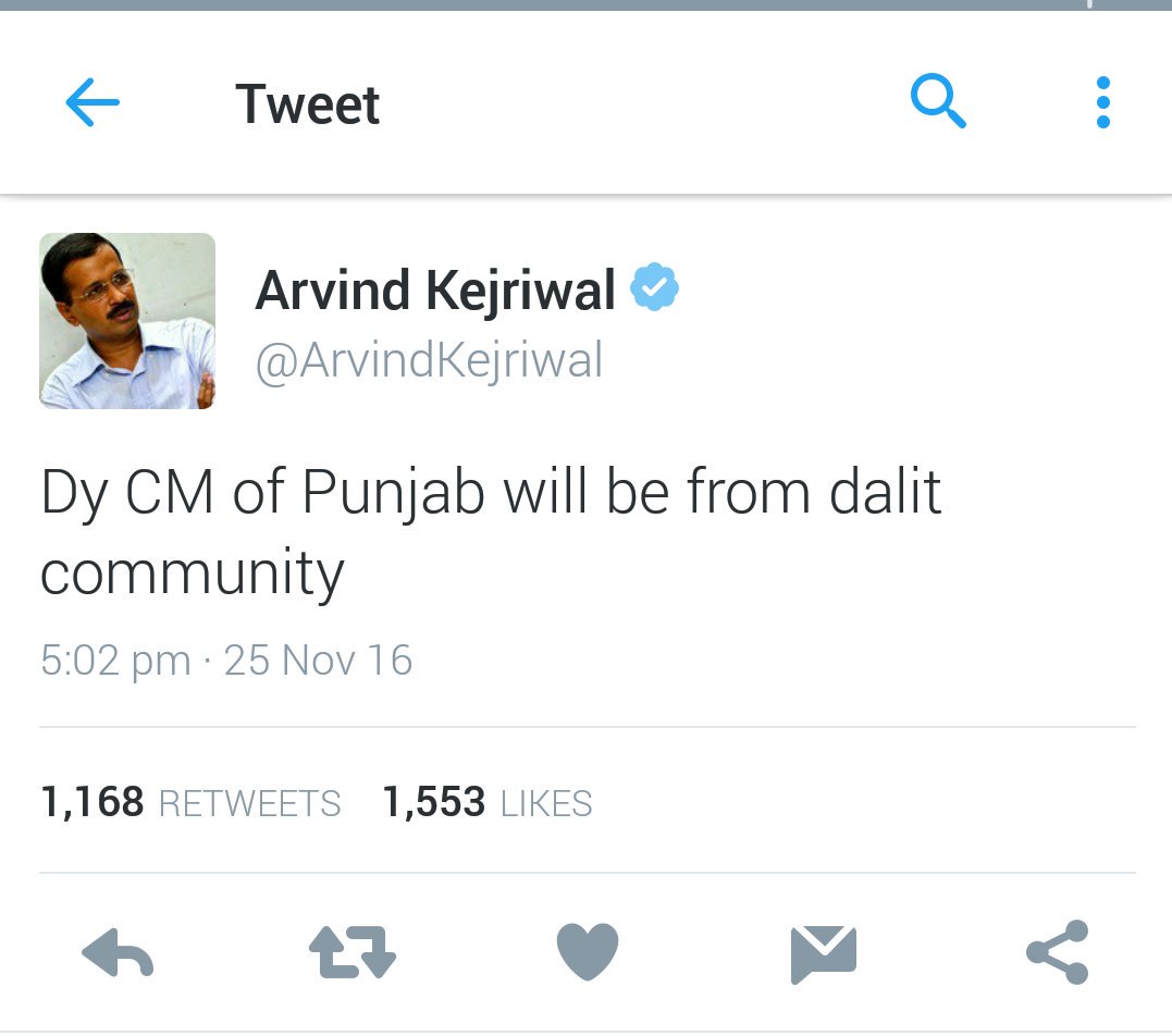 You r AntiDalit,that is why U r taking rights of Dalit to become CM of Punjab,Why so @ashutosh83B ?https://twitter.com/ArvindKejriwal/status/802112711836377089 …