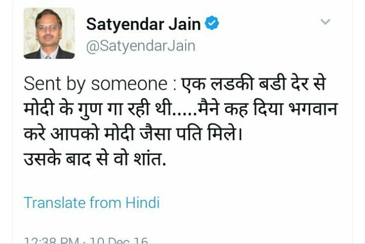 मफलर जी @ArvindKejriwal के स्वास्थ्य मंत्री @SatyendarJain ट्विटर पे #मोदी जी पे तंज कस के दिल्ली का इलाज अच्छे से कर रहे है